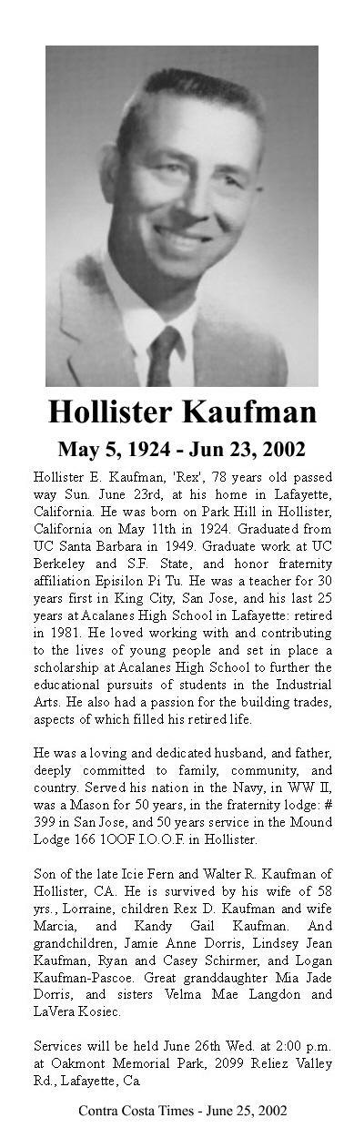 Hollister Kaufman (Teacher, Auto Mech, Shop)